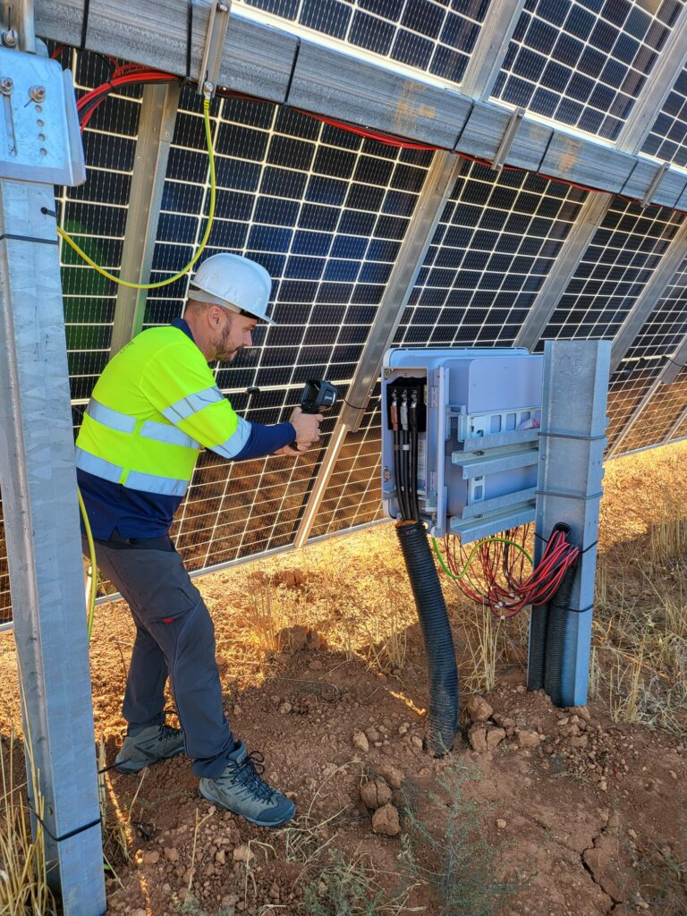La cámara termográfica avanzada de mano, FLIR E54, es nuestra más reciente adquisición. Muchas veces, cuando hacemos las termografías aéreas de los parques solares, nos piden también realizar la termografía de la parte eléctrica de las mismas, esto es, los cuadros, inversores y centros de transformación.